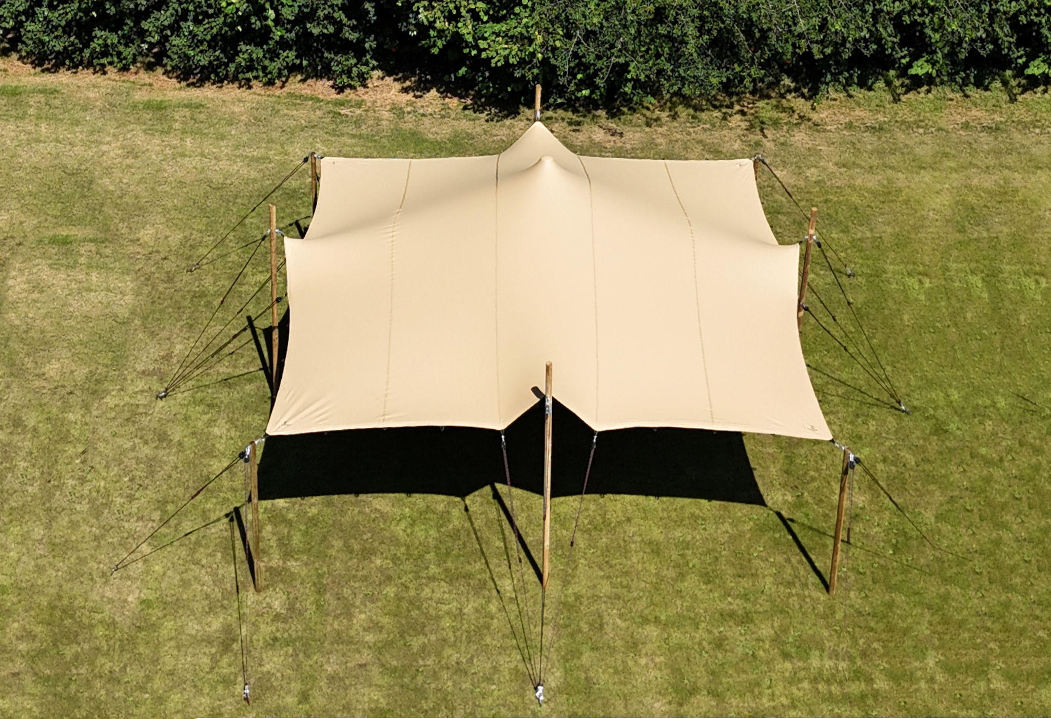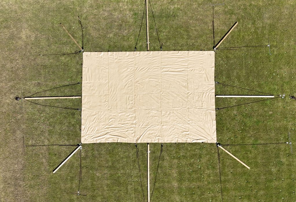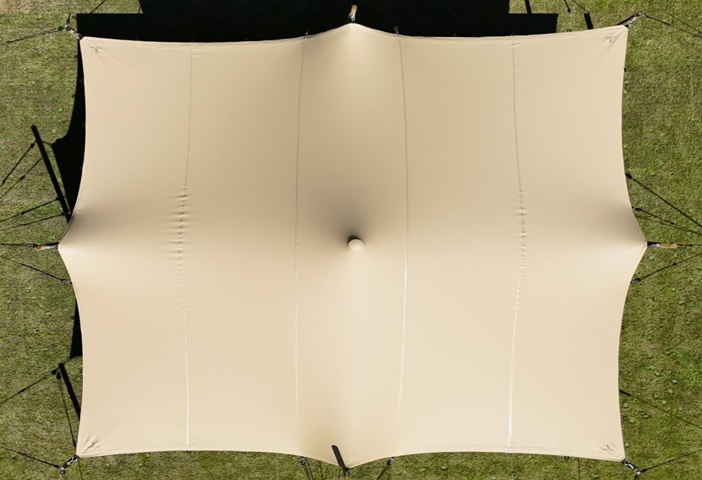 Viszonylag kompakt, 5,0 x 7,0 m-es méreteivel ez a feszített sátor körülbelül 35 fő számára biztosít helyet.